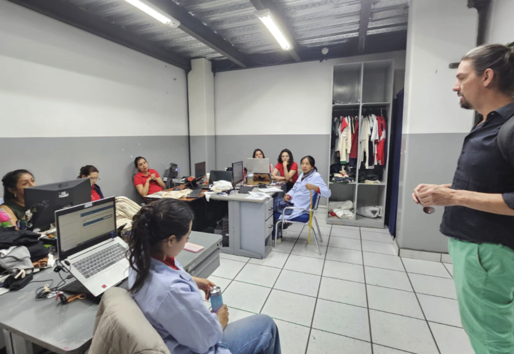 El recorrido incluyó áreas como producción, planificación, recursos humanos, tejeduría, tinturado, laboratorio de color, bodega de materia prima, control de calidad de telas, bodega de insumos e incluso venta de telas. En cada espacio, se habló de lo que ya está listo y de lo que aún se puede ajustar. Se revisaron los accesos al micrositio, el uso del chatbot, las rutas de soporte y los criterios de evaluación. Y en muchos casos, se activaron los recursos en tiempo real.